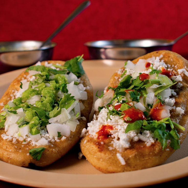 2 Sopes / 2 Gorditas / 2 Tlacoyos.