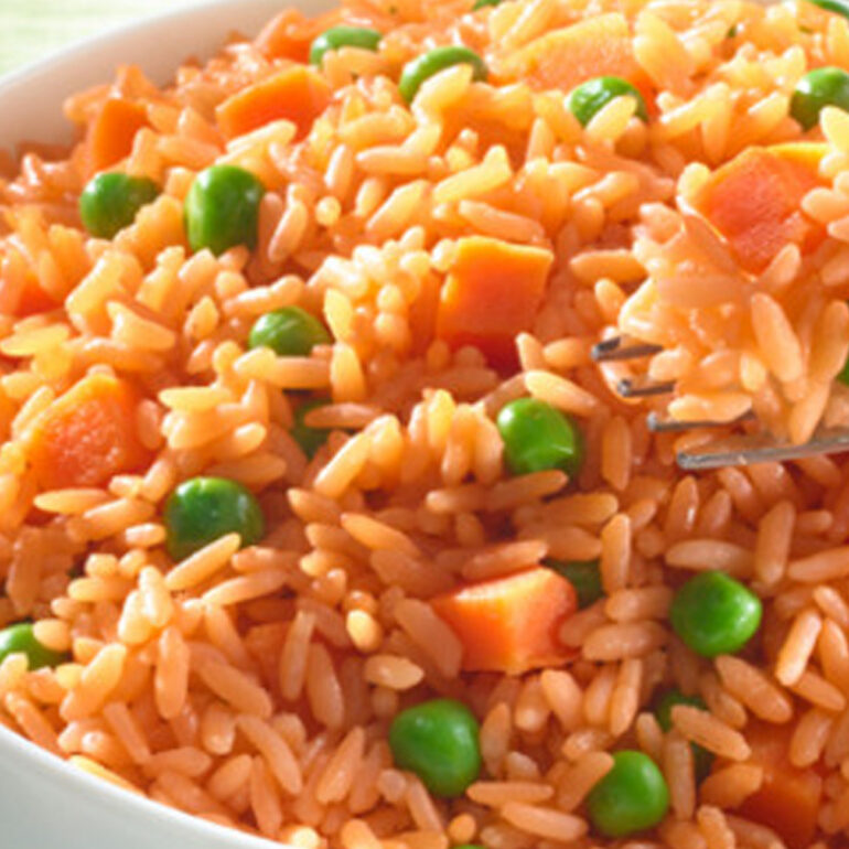 Arroz con chícharo y zanahoria.